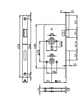 Замок-защелка врезной цилиндровый Kale-kilit, 150 BAD 0016